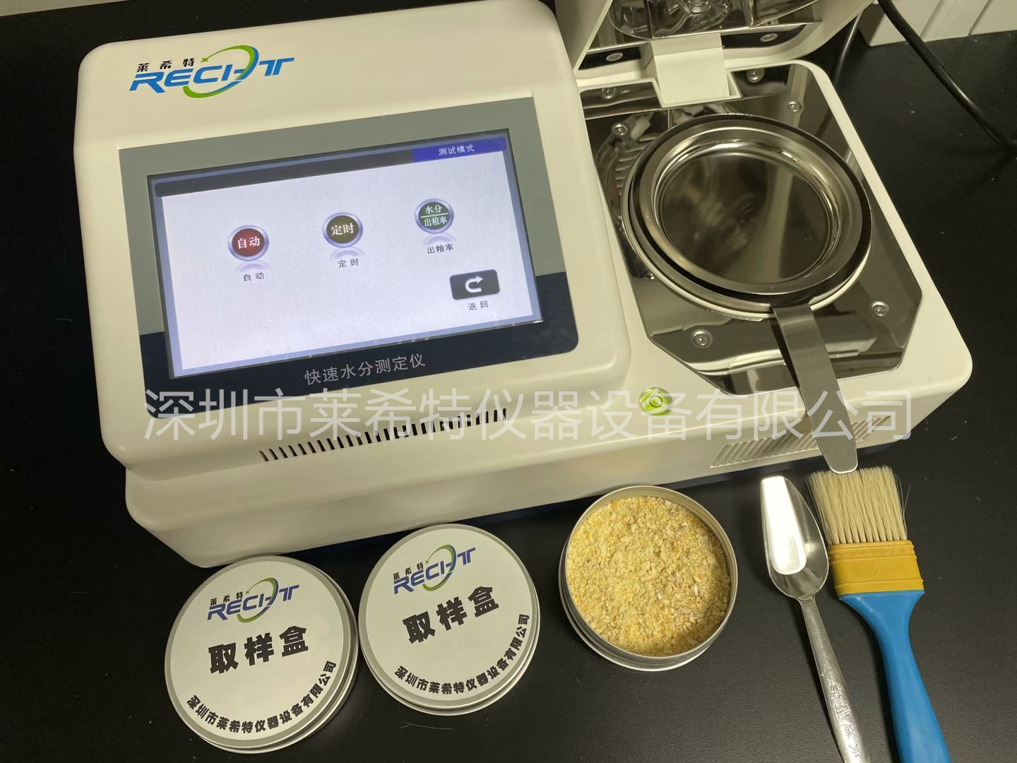 LXT系列玉米出粮率检测仪由深圳市莱希特仪器设备有限公司研发生产,仪器是由称量单元和加热单元组成,是基于干燥失重原理来测定样品的水份含量。水份检测仪通过内部集成的称重系统记录样品重量初值,然后采用钨卤环形光源对样品加热,称量系统实时监测并记录样品重量,当达到规定要求时自动停止测量,并记录样品重量终值。通过重量初值与重量终值对比,仪器自动将样品重量的差值换算成水份含量及固含量。莱希特水份仪是测试样品水份含量的可靠选择,产品符合GB/T 29249-2012 电子称量式烘干法水分测定仪国家标准。