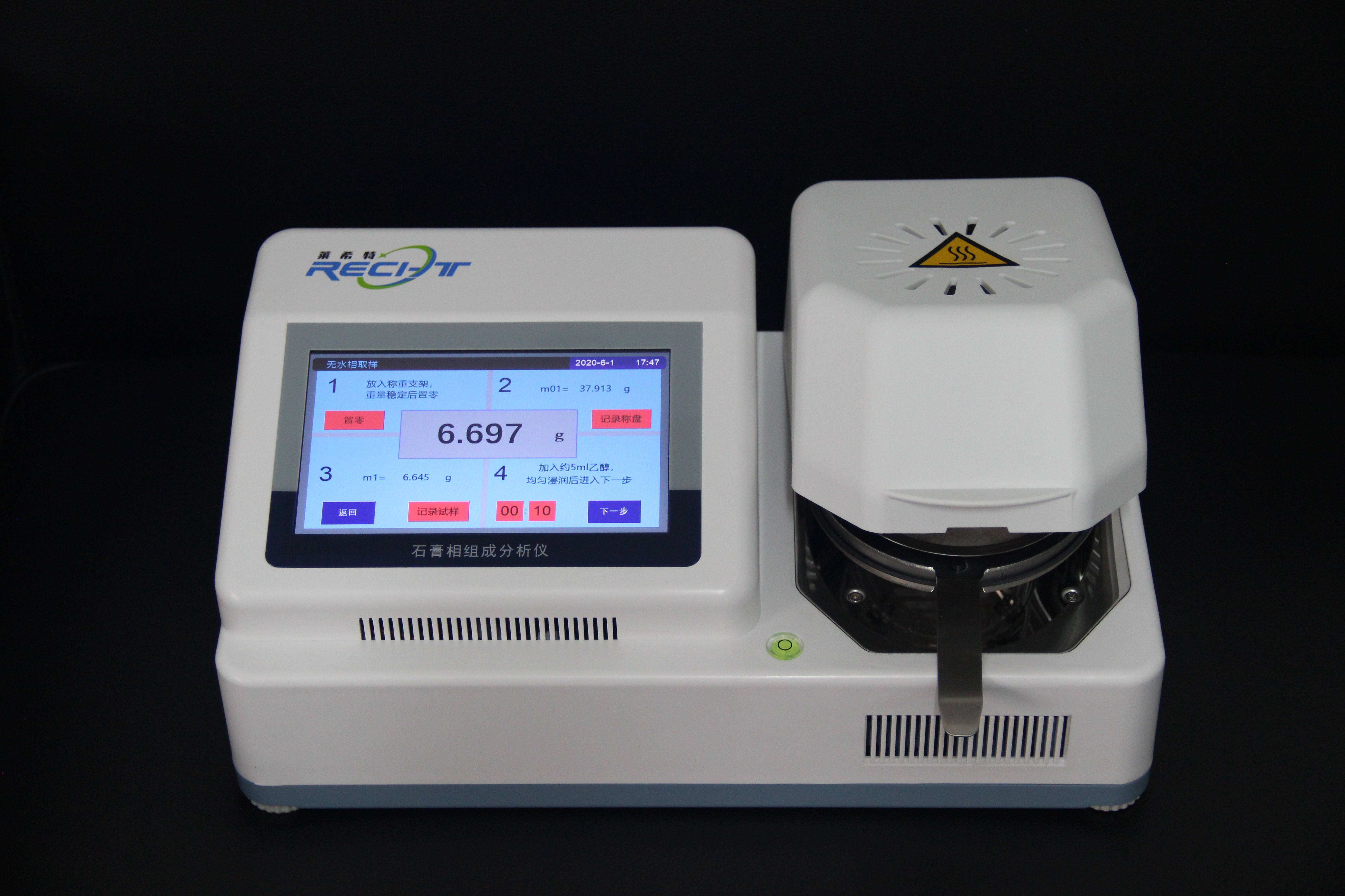 莱希特石膏三相测定仪是由称量单元和加热单元组成,是基于干燥失重原理来测定样品的水份含量。水份检测仪通过内部集成的称重系统记录样品重量初值,然后采用钨卤环形光源对样品加热,称量系统实时监测并记录样品重量,当达到规定要求时自动停止测量,并记录样品重量终值。通过重量初值与重量终值对比,仪器自动将样品重量的差值换算成水份含量及固含量。